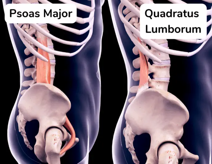 Deep, posterior core muscles attach to and stabilize the lumbar spine (lower back). These muscles include the psoas major and quadratus lumborum.
